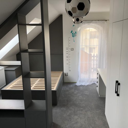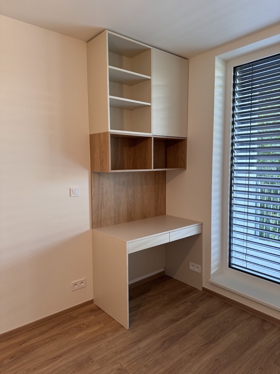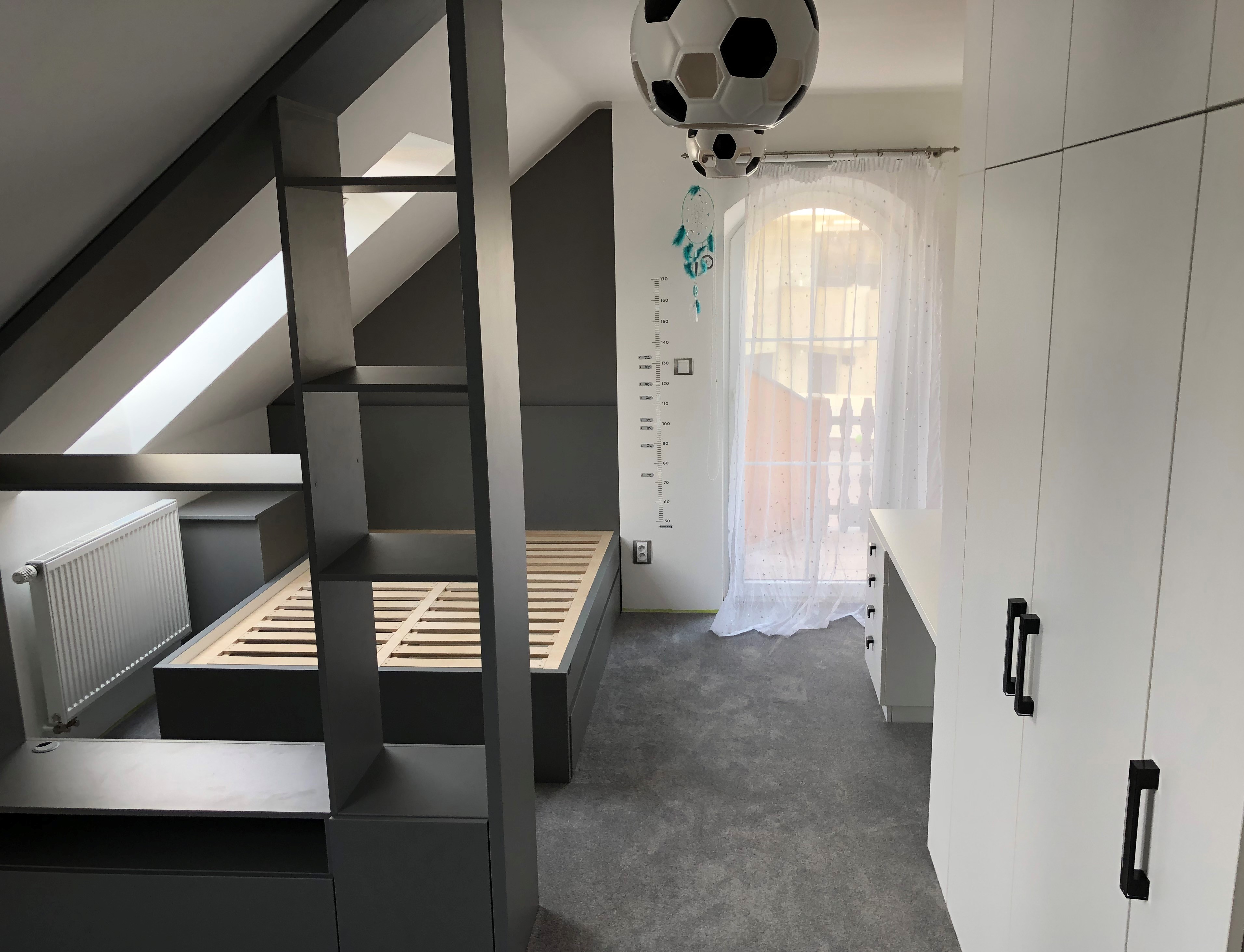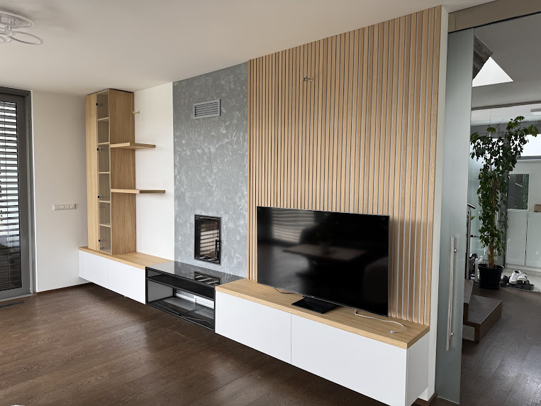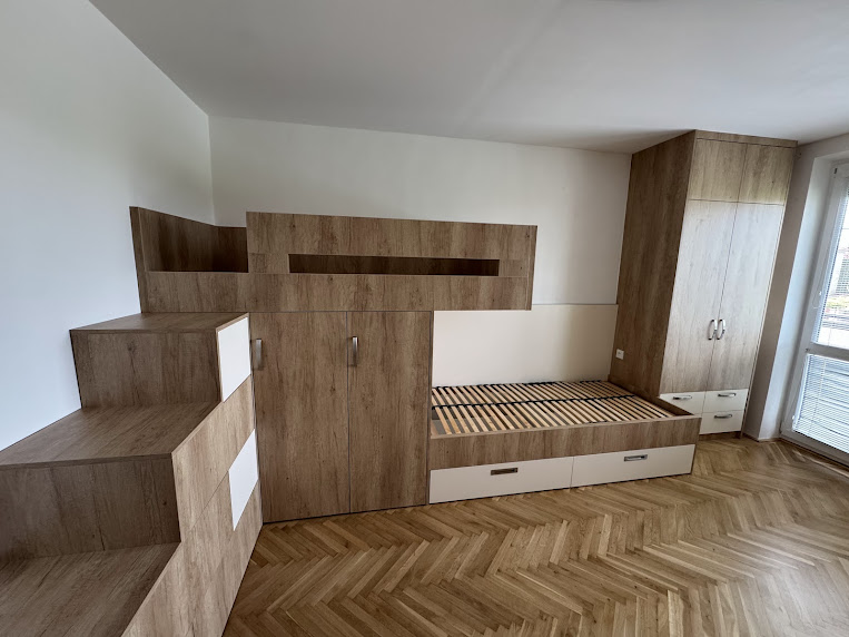 Ať je to byt, dům, nebo jen dětský pokojík. Rádi vám navrhneme a vyrobíme celkové řešení interiéru. Od návrhu, přes 3D vizualizaci, až po kompletní realizaci. Od věšáku na ručníky, přes pokládky podlah, po instalaci elektrospotřebičů do námi vyrobené kuchyňské linky.